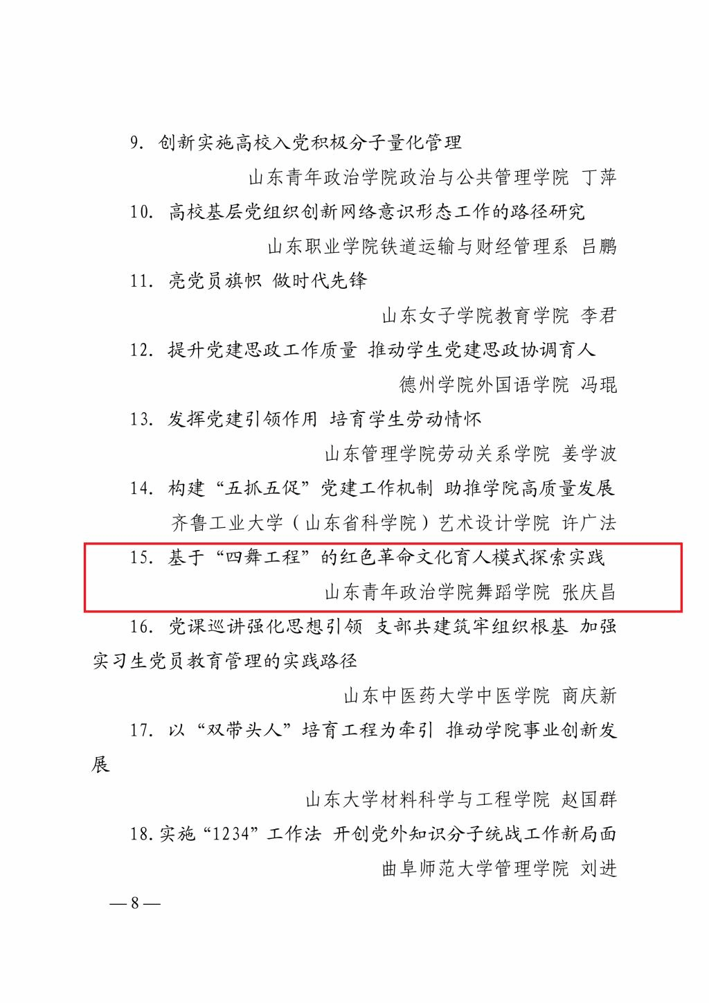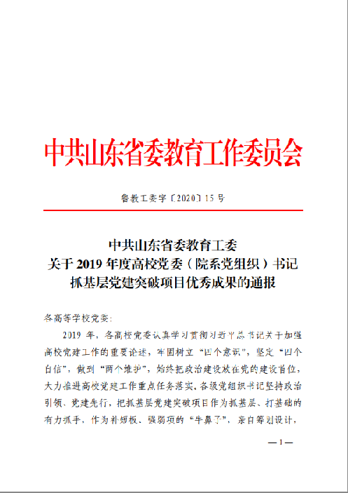 近日,中共山东省委教育工委发文,对全省25个高校党委书记抓基层党建突破项目优秀成果和25个高校院系党组织书记抓基层党建突破项目优秀成果进行了通报表扬。