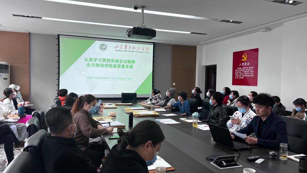 薛亮以《认真学习贯彻各级会议精神,全力推动学院高质量发展》为题,从学习政府工作报告里涉及教育部分修改内容、解读教育部高等教育司吴岩司长的重要讲话、传达省和我校近期有关教学的重要会议精神等三个方面做了解读。第一部分指出,今年的政府工作报告一共修改了92处,其中教育部分的修改有14处。教育部分的修改是重中之重,这体现出党和国家将教育优先发展摆在突出位置。对于职业教育分别增加了“发展现代职业教育”与“增强职业教育适应性”,习近平总书记对职业教育工作作出重要指示,强调职业教育前途广阔、大有可为。第二部分解读教育部高等教育司吴岩司长的《顶天立地、久久为功、深化新教改、打造新形态、提高新质量》讲话精神。吴司长说2021年是奏响夯实教育教学新基建的主旋律年,2022年是奏响深化新教改、打造新形态、提高新质量的冲锋号之年!第三部分传达了近期有关会议文件精神,包括3月5日全省高校党建和意识形态工作专题培训会、3月10日全省教育工作领导小组工作视频会议。第四部分围绕落实党委书记魏艳菊在2022年工作会议上的讲话精神进行解读。