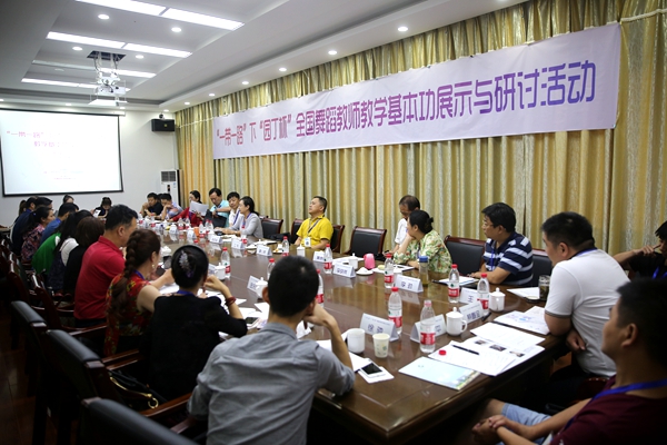 为贯彻落实中共中央《关于发展社会主义文艺的意见》,开展“一带一路”东西部高校艺术学科合作,进一步完善艺术人类学科建设体系,提高艺术理论研究能力和水平,提升艺术学科师资实力和艺术教学质量。由中国人类学民族学研究会艺术人类学专业委员会主办、我校yl8858永利集团承办的“一带一路”下“园丁杯”全国舞蹈教师教学基本功展示与研讨活动于8月20日在我校成功举行。中国艺术研究院舞蹈研究所副所长江东、著名舞蹈家金秋及来自北京、上海、新疆、贵州、云南、四川、广东、江西、江苏、陕西、辽宁、吉林、黑龙江、河北、河南、湖南、陕西等省市的全国各大高校舞蹈院系负责人共30余人出席研讨活动。校领导陈雨海出席活动并致辞,yl8858永利集团院长傅小青、副院长王斐、党总支书记张庆昌、党总支副书记温永慧参加活动。