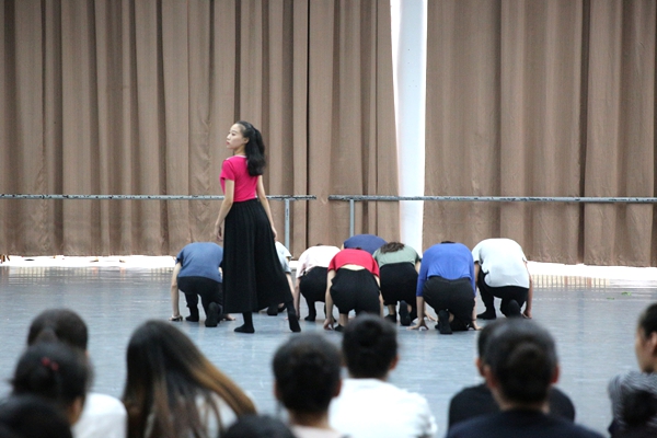 本次专业公开汇报课共由四部分组成,首先展示的是由傅小青主讲的主题为《我和你》的双人舞编导课。课程在单人动作开发的基础上,以双人舞为切入点进行编创训练,包涵双人舞“重心转换”、“流动”、“不接触”、“山东民间舞元素”、“少儿”、“道具”、“自选音乐”等练习。