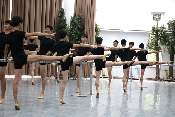 宁斌准备的中国古典舞基训男班课堂,通过“活动组合”、“蹲”、“大弹腿”、“单腿蹲”、“腰控制”、“大踢腿”、“转”、“控制”、“小跳”、“中跳”、“大跳”、“技巧”等把上把下组合,让同学们了解中国古典舞基训,更好的来表现古典舞的形、神、劲、律和精气神。宁斌的亲身示范,赢得现场阵阵掌声。