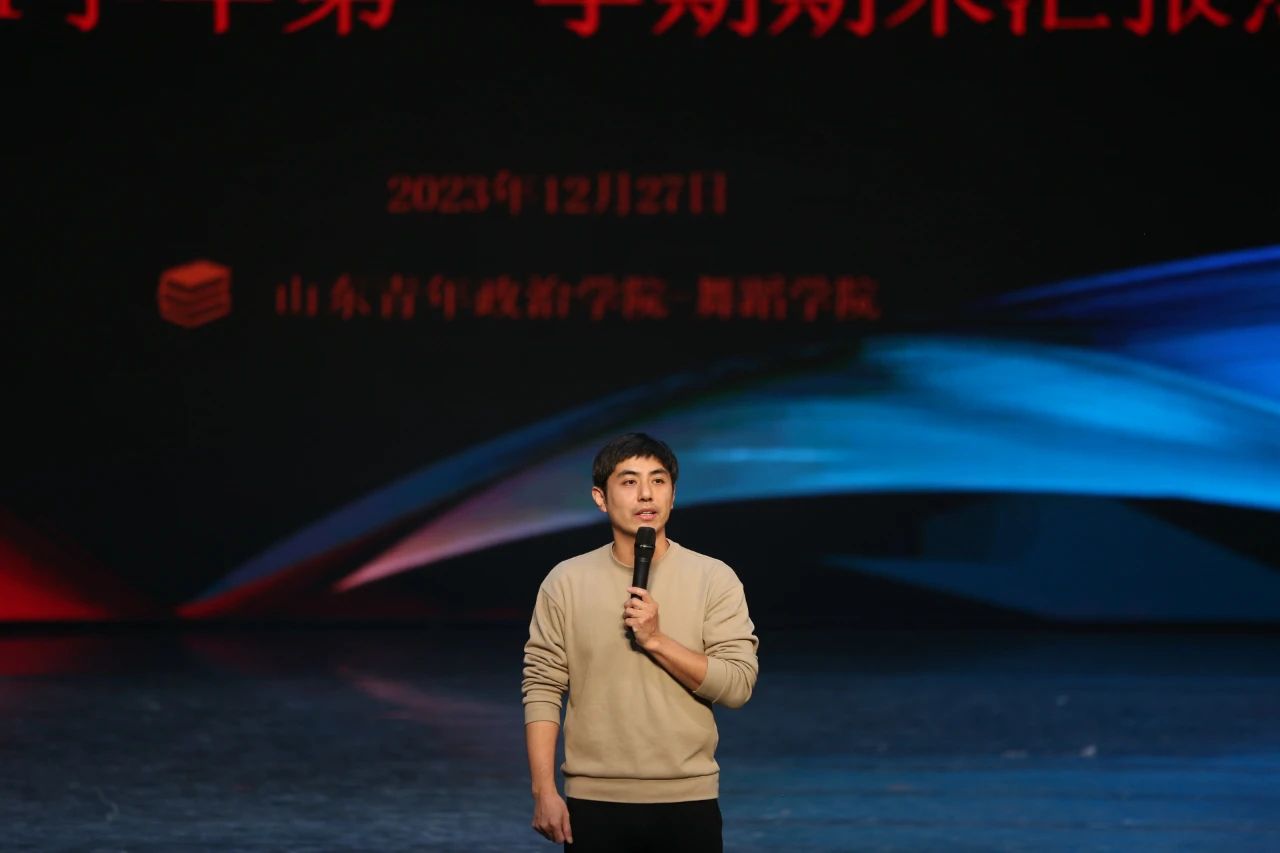 王斐分享了在这次汇报中的感受。他讲到,教师团队不仅传授了传统的舞蹈技巧,更注重培养学生的创新思维和实践能力。通过引导学生探索民族文化的内涵,激发了学生的创造力,使得学生能够自编组合并在舞台上展示。这一转变不仅体现了教师团队的教学改革,更展示了学生们的才华和潜力。