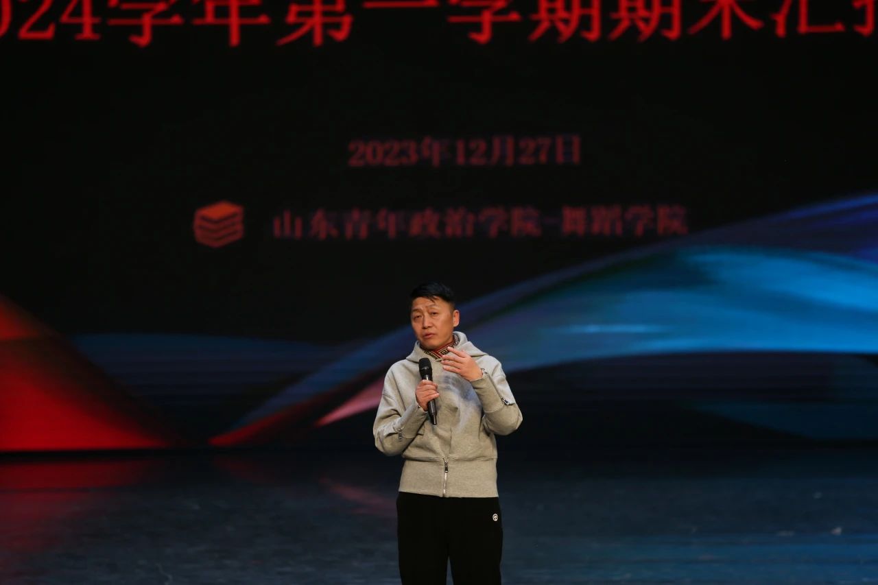 傅小青带领大家共同回顾了持续六天半的期末汇报,他表示,从课堂培训到舞台呈现,教师们以创新的思路和方式将理论知识与实践相结合,让学生在掌握专业技能的同时也培养了他们的舞台表现力和自信心。随后,傅小青强调了公开课汇报的重要性和意义,通过这样的活动,不仅让学生在实践中提升了专业技能,还让他们更加深入地了解了所学专业的特点和要求,同时公开课汇报也是对学校教学质量的一次全面检阅,有助于推动教师教育教学水平的提升。