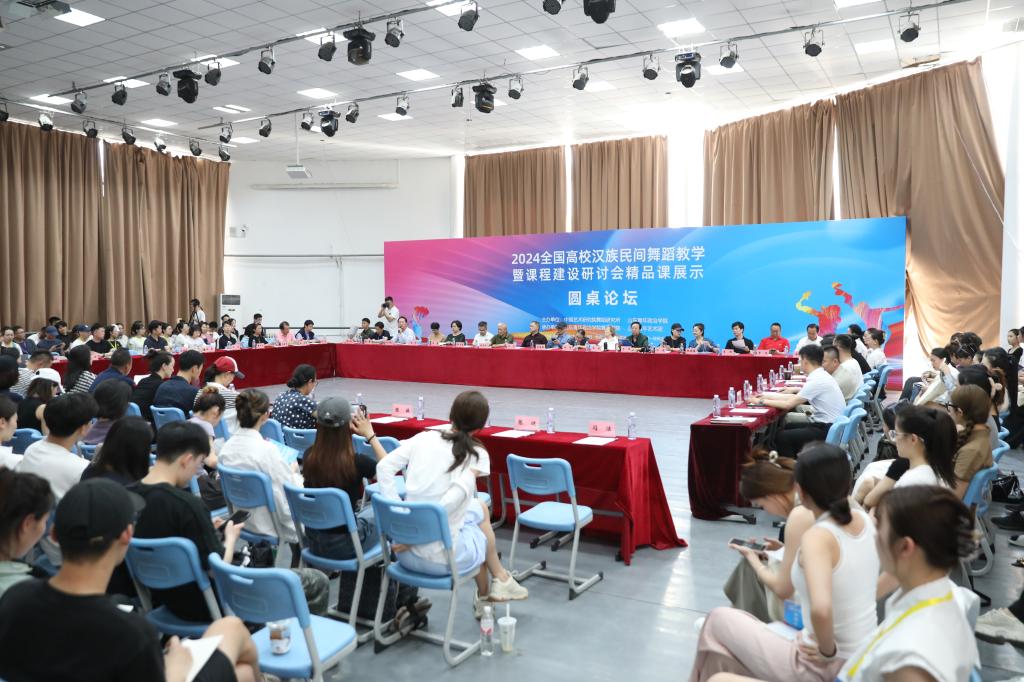 2024全国高校汉族民间舞蹈教学暨课程建设研讨会圆桌论坛于5月19日在双馨楼举办。来自汉族、藏族、蒙古族、朝鲜族等不同民族的专家学者围绕汉族民间舞蹈以及少数民族民间舞蹈的文化内涵、教学理念、学科建设、人才培养、授课形式、新时代舞蹈美育等方面展开了深入探讨与交流。