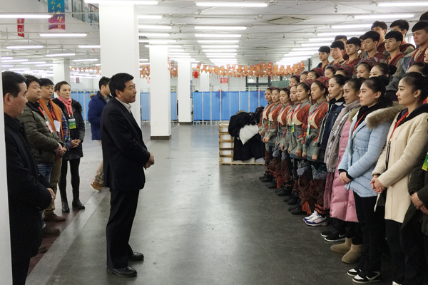 在我院师生的排练过程中,山东省教育厅、山东省代表团及学校领导和各部门及老师给予了大力的支持与帮助。山东省教育厅副厅长张志勇,省教育厅体卫艺处处长任兰平、副调研员张端,yl88858永利中国党委副书记刘先义莅临指导。而我院师生为准备此次展演活动,放弃与家人共度新春佳节的宝贵时光,克服种种困难,按时返校排练。有的同学腊月二十六刚刚结束北京春晚的录制工作回到家中,又订好大年初二的车票返校排练,假期缩短至仅仅一周。其中,家住山西运城农村的石皓文离校最远,他在大年初一就到县城打听是否通车,买好初二的年后第一班车票,可谓跋山涉水赶回济南。应届毕业生肖君妍、张媛、杜瑞、高恒、赵浩、郭嘉星、杨苑文、高亚男、仵艺璇等同学本来已经定好年后开始实习、准备参加工作,但接到通知后立即跟单位请好了假,于大年初二按时返校。同学们精神饱满,一丝不苟,全身心投入到训练之中,有力地展示了我院师生的团结向上、不畏困难、甘于奉献、开拓创新的精神风貌。