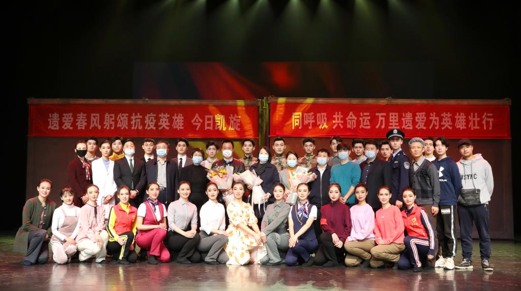 他们走上台与舞蹈诗《逆行》全体演职师生面对面交流,叙述抗疫前线的暖心故事,分享抗疫一线的心得体会,并为作品下一步的创作提出了自己的意见。可谓是,为师生上了一堂意义非凡的“思政课”。
