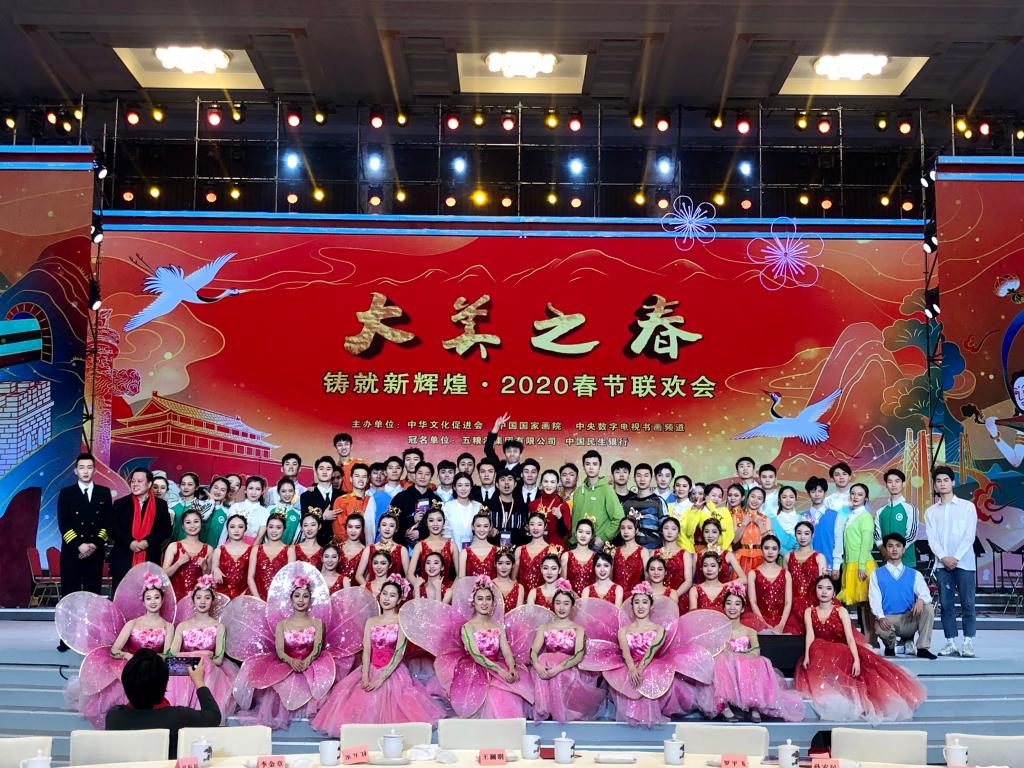 我院刚刚结束“百花迎春”2020中国文联春晚的演出录制,便马不停蹄的转场到2020“大美之春”春节联欢会继续奋战。本届“大美之春”最大的亮点是将“奋进新时代”这一主题与现场表演和美术艺术充分结合贯穿整场活动。由我院编创并参演的《开场》、《二十年后再相会》、《大美中国》、《庆丰收》、《再一次出发》5个节目赢得了现场热烈掌声和一致好评。