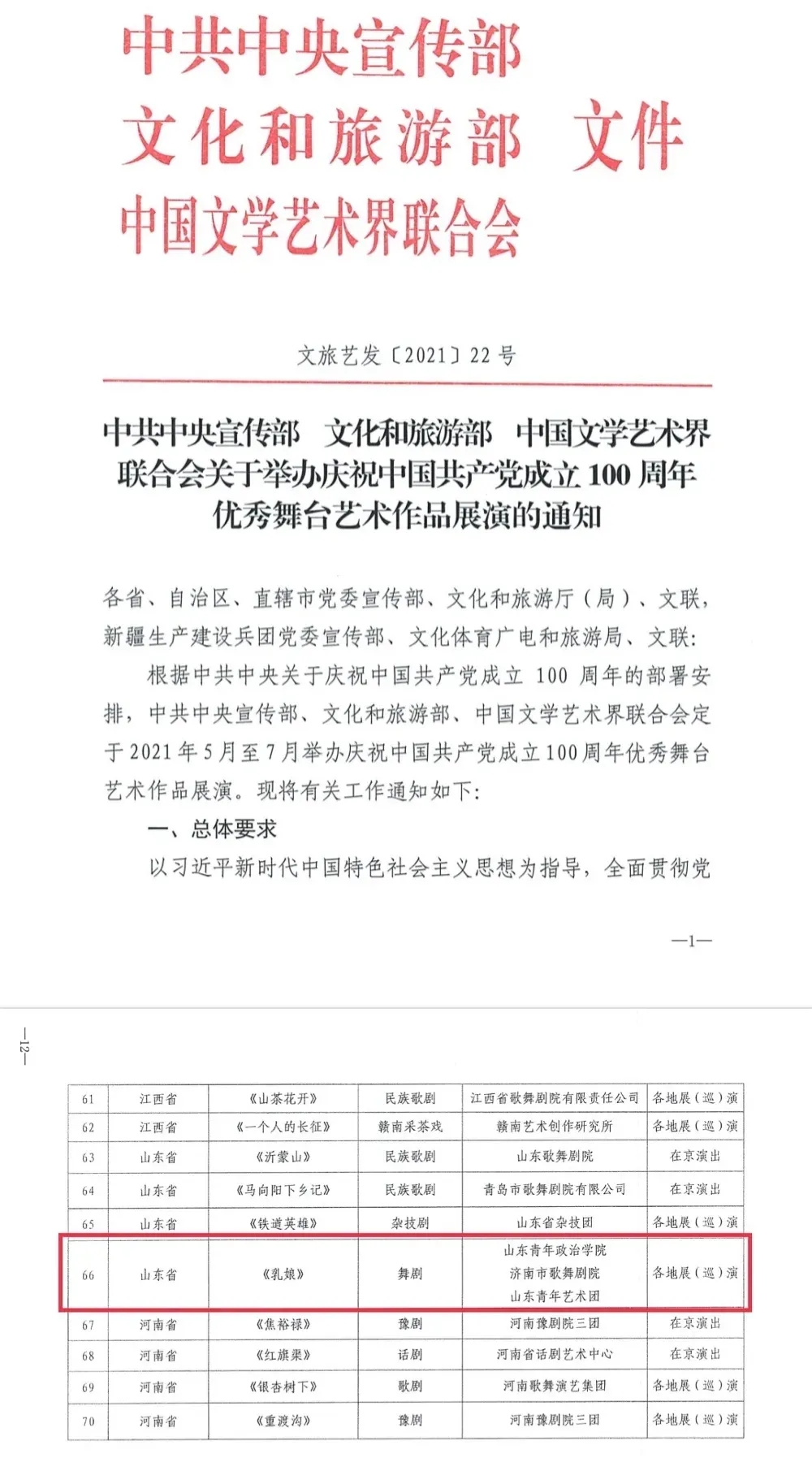 日前,中宣部、文旅部、中国文联发文,庆祝中国共产党成立100周年优秀舞台艺术作品展演将于2021年5月至7月进行。此次展演从全国范围内遴选,有140部优秀作品,以及复排经典作品进入参演名单。舞剧《乳娘》光荣入选!我校成为所有创作单位中唯一高校。
