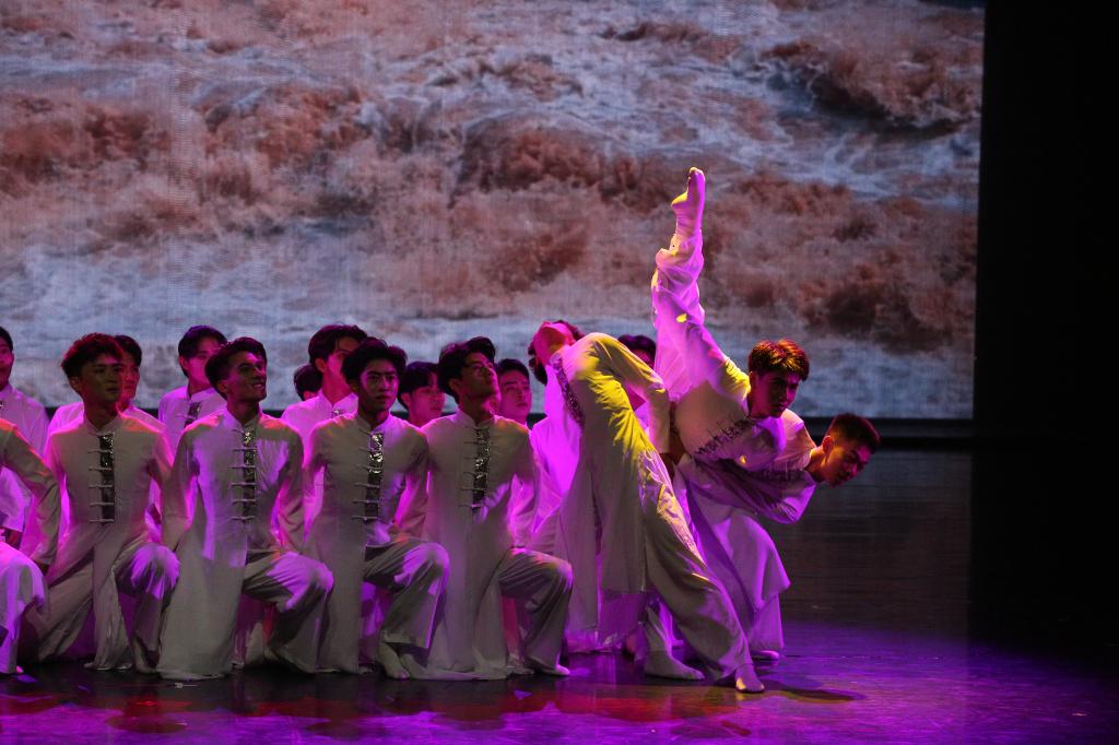 2021级舞蹈学专业杨舒文说:“黄河流经触山盘,盘窝毂转秦地雷。五千多公里百万年地流淌,九个省自治区的涵养。大型舞蹈诗画《大河奔流》,将母亲河的印痕在风格各异的民族地域文化、遗风以舞蹈的形式淋漓尽致地展现出来。令作为观众的我们感受到的不仅是黄河流经地域、哺育千万人民之广之伟大,还有各民族平等团结共筑祖国美好未来蓝图的愿望!”