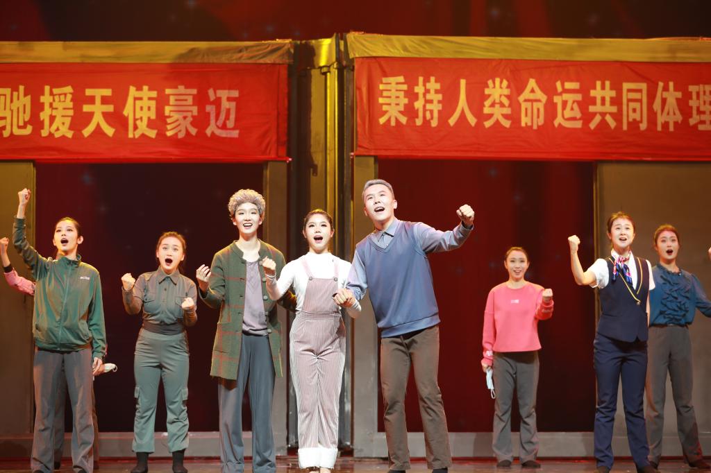 从复排到演出用时不到两个月,可见任务之艰巨,时间之紧迫。排练是非常辛苦的,但演员们从未放松,他们每天排练耗尽体力难得休息,即便是汗流浃背。每个人都在极限中次次突破,用每一个眼神、每一个动作、每一次呼吸表现当时那种不畏艰难、无私奉献的抗疫精神。