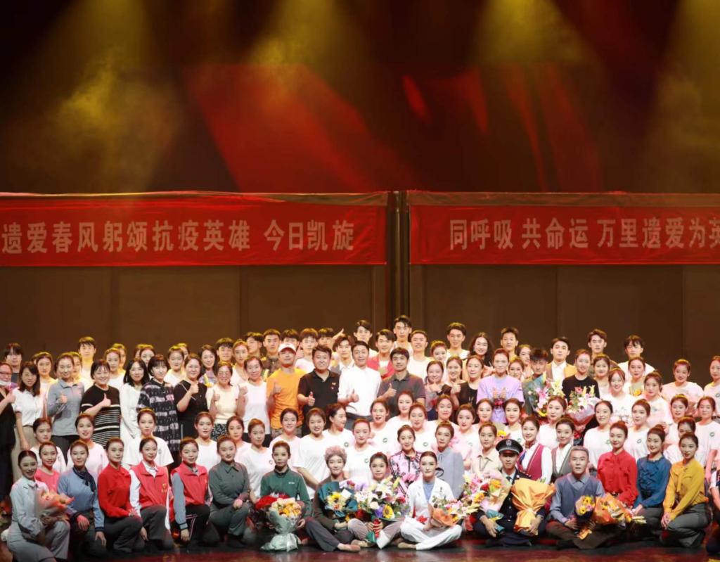 舞台上,演员们不辜负之前在排练厅的整日坚守,把那一份份寄托、一份份热血全部都挥洒在了舞台上。他们用精彩的舞蹈演绎了在抗疫时感人至深的故事,将伟大的抗疫精神传播给了现场观众,大家都被剧情牵动心弦,每个人眼含泪水,被演员们的精彩表演所深深感染和震撼。
