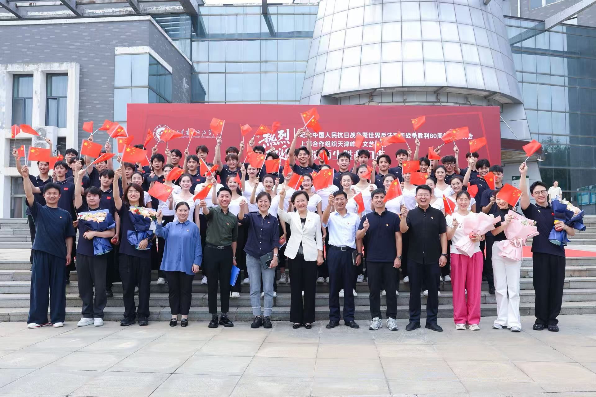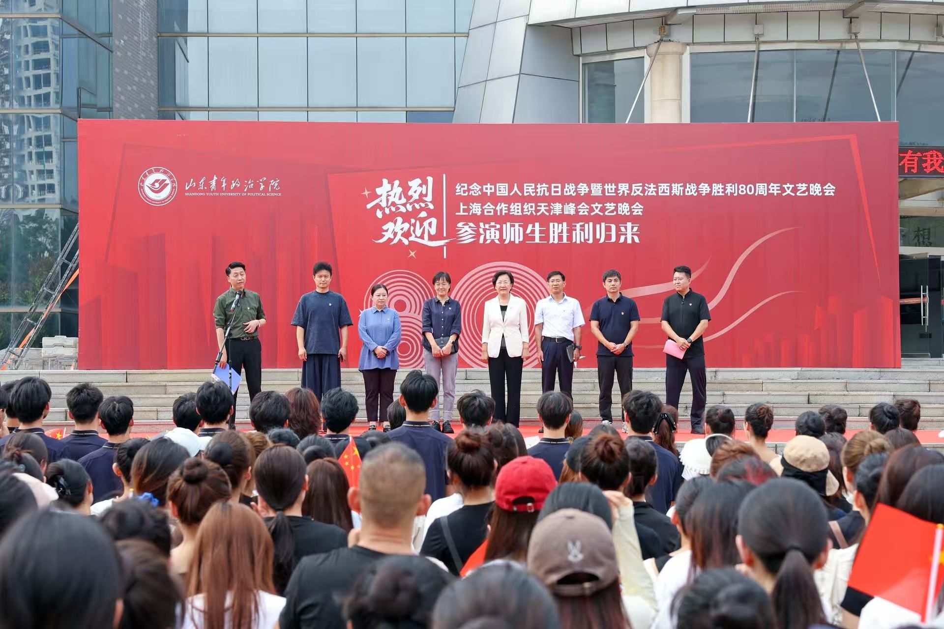 9月4日下午,双馨楼广场掌声如潮,学校举行欢迎仪式,迎接圆满完成纪念中国人民抗日战争暨世界反法西斯战争胜利80周年文艺晚会《正义必胜》师生回校。党委书记魏艳菊出席仪式并讲话,党委委员、宣传部部长石瑞宝,党委委员、统战部部长范红伟参加活动,yl8858永利集团全体师生共同见证荣耀时刻。