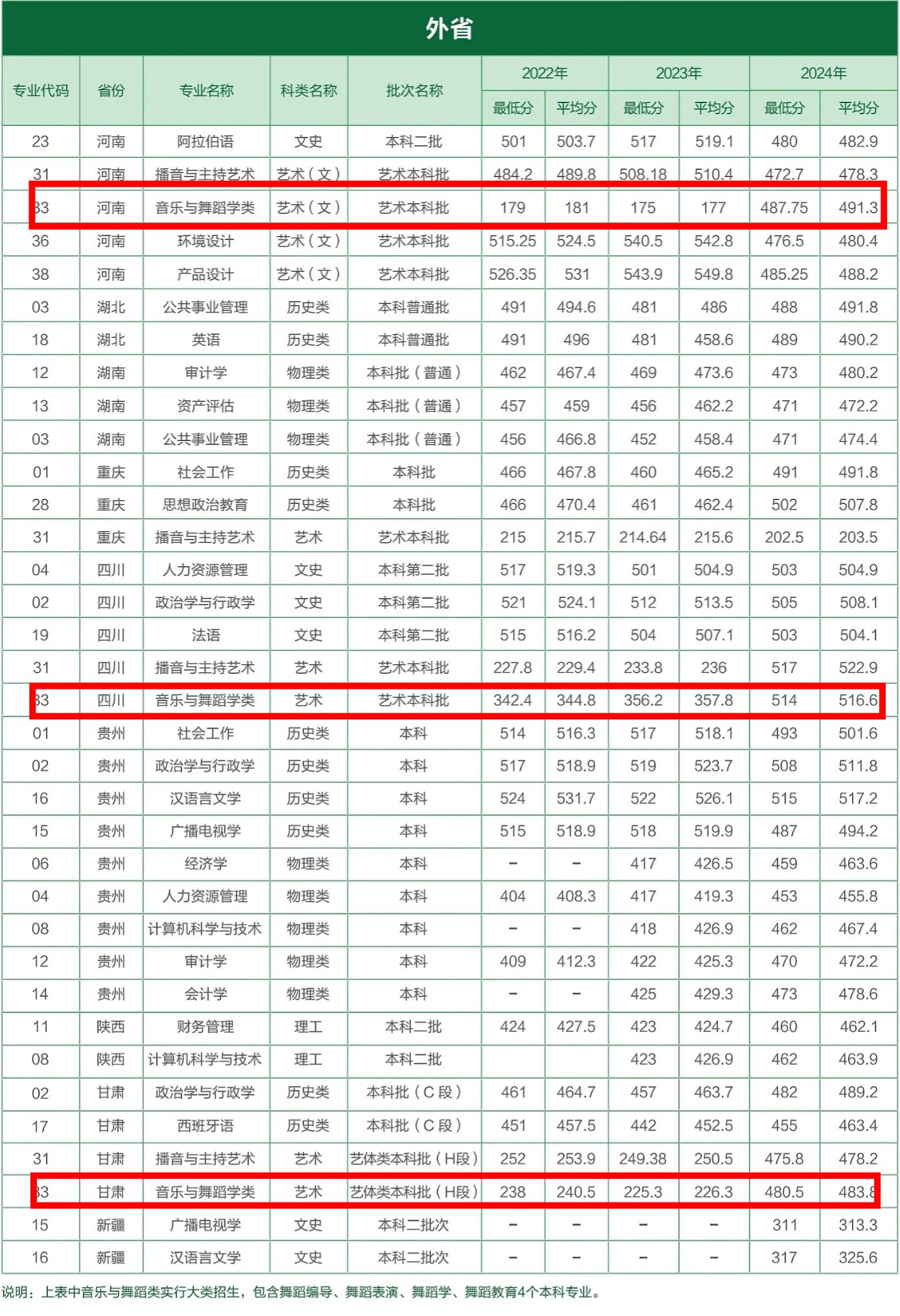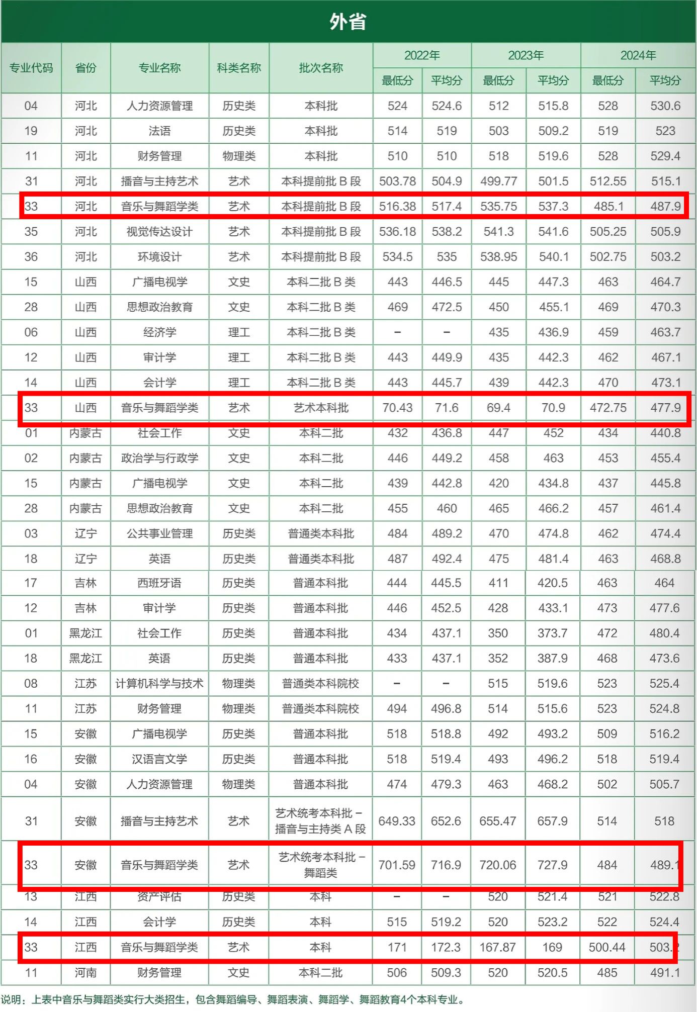 yl8858永利集团音乐与舞蹈学类专业近三年外省录取分数如下: