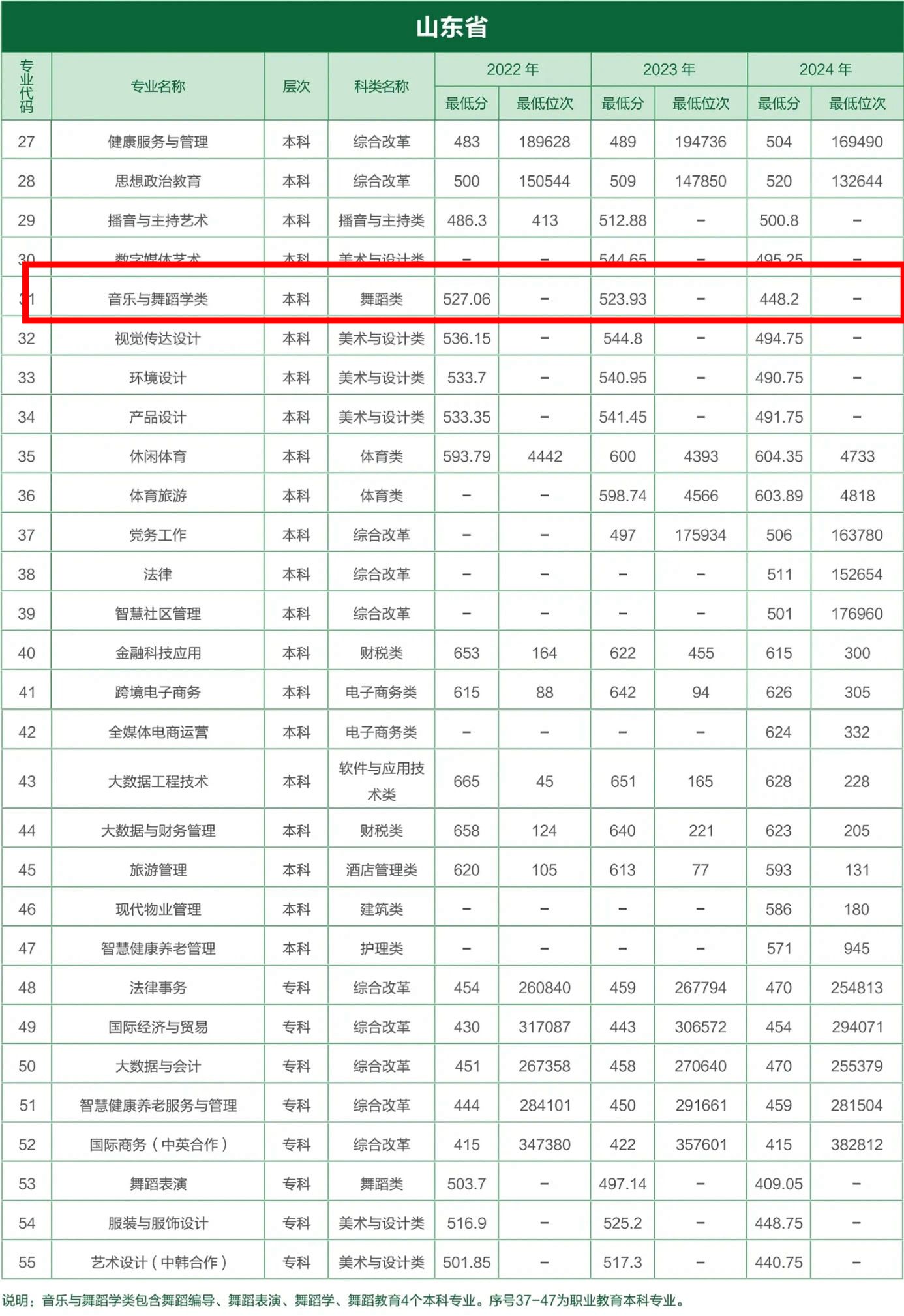 yl8858永利集团音乐与舞蹈学类专业近三年山东省录取分数参考如下: