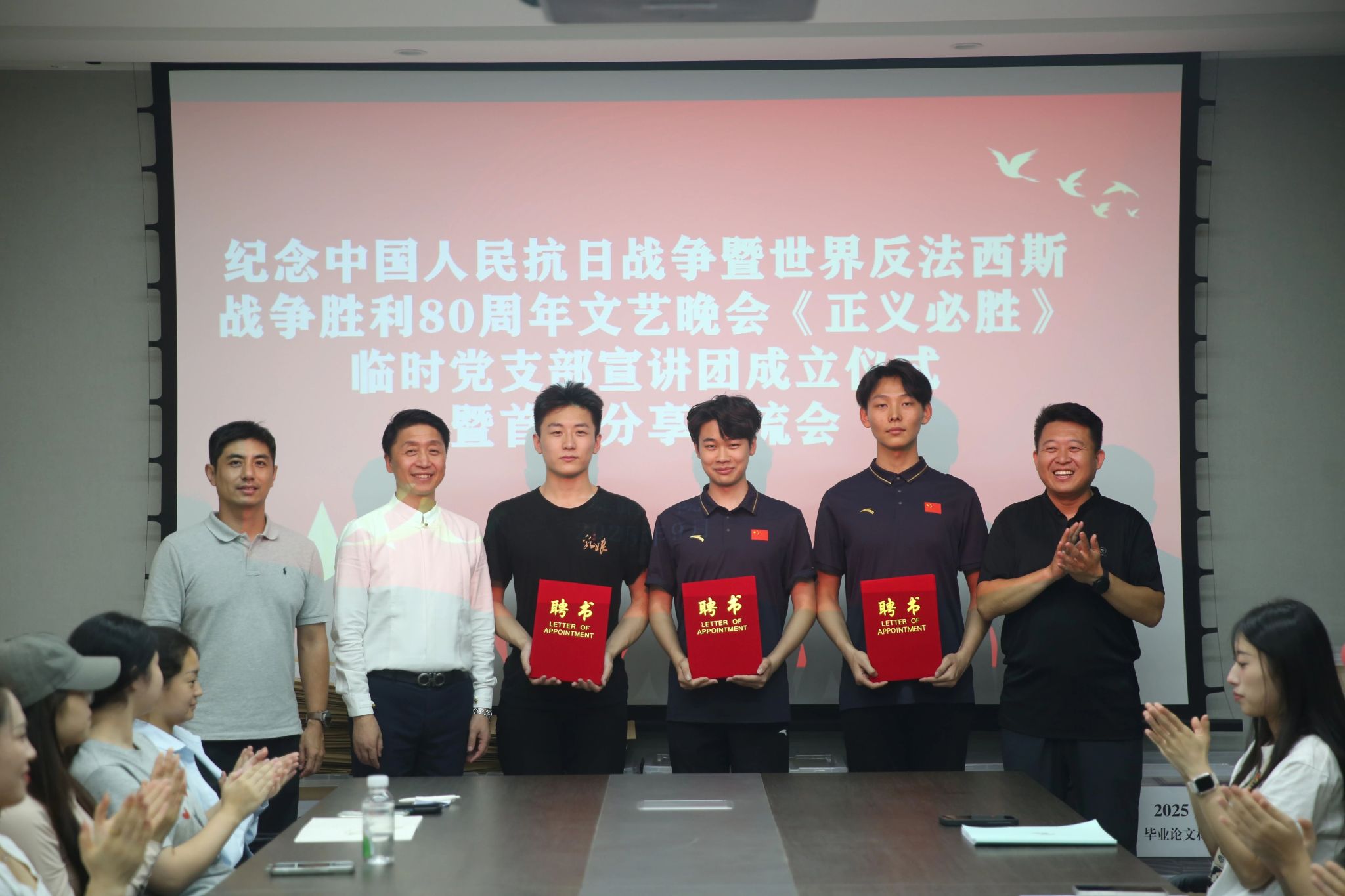 9月11日,yl8858永利集团举行青年宣讲团成立仪式暨首期分享会,为宣讲工作拉开序幕。学院领导为宣讲团成员颁发聘书,并强调团队要以“讲好抗战故事、传承红色薪火”为核心使命,既要深挖抗战历史中的精神内核,又要结合舞蹈艺术特长创新表达形式。会上,宣讲团成员结合《正义必胜》晚会排演经历分享了感悟,从查阅抗战史料理解历史背景,到用肢体语言诠释民族气节,成员们的分享不仅让在场师生更直观感知“艺术与思政”的融合路径,也为后续宣讲奠定了“以情动人、以艺传声”的基调。
