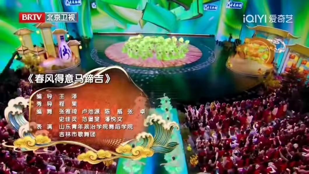 本届春晚以“春风得意马蹄吉”为主题,以“将北京的露台搬进春晚”为创意核心,融人文温度与城市烟火气于一体,为全国观众献上一场高品质文化盛宴。学校师生全程参与《春风得意马蹄吉》《拜新年》《我要飞得更高》《阳光彩虹小白马》《人生得意须尽欢》《一起开麦吧》六个节目的演出,灵动舒展、富有张力的舞姿贯穿晚会始终,生动展现了学生们扎实的专业功底、昂扬的青春姿态与赤诚的艺术追求。